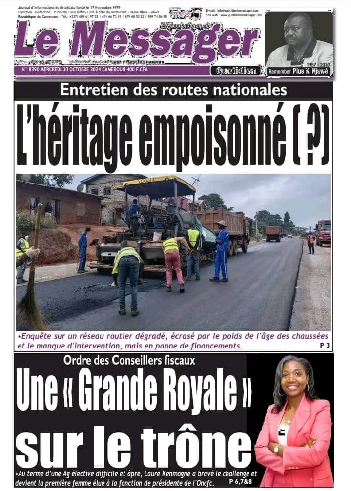 Au cours d’une rencontre des élites du département du Nyong Esso dans le cadre du comité de développement le dernier week-end du mois d’Octobre, le patron de la police a fait preuve d’une certaine de sensibilité à l’égard des colères des populations. Mbarga NGUELE raconte l’une de ses expériences cauchemardesques de voyage « J’ai été à Mutengene, au Sud-Ouest, pour la sortie du nouveau contingent de policiers. Entre Yaoundé et Mutengene, cela a été un calvaire pour circuler. Je n’avais jamais vécu cette situation auparavant. » Le débat monte au pays de Paul Biya ; le journal Le Messager en kiosque ce mercredi 30 octobre 2024, évoque le manque de financement comme principal frein pour la réhabilitation de plusieurs routes dans notre pays.
