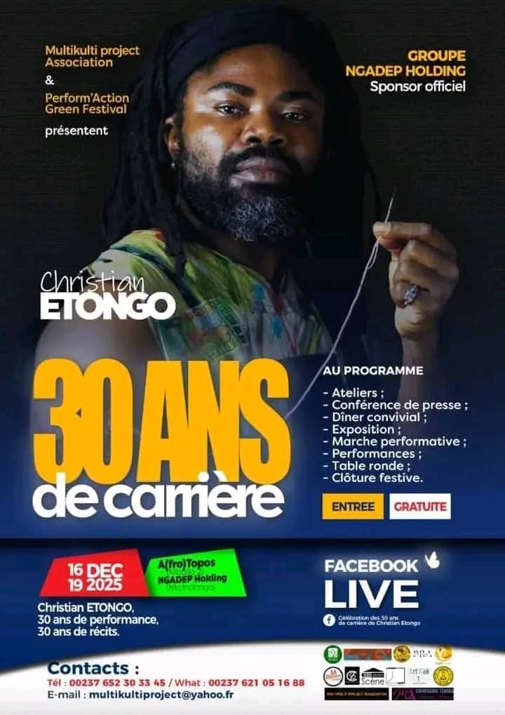 Trente ans après ses débuts, Christian Etongo n’a rien perdu de sa fougue. Il a créé une vingtaine de performances, exposé dans plus de dix pays, et continue de creuser son sillon, entre art, spiritualité et mémoire. Son œuvre, viscérale et dérangeante, est une tentative de réconciliation entre l’individu et ses racines, entre le passé et le futur.