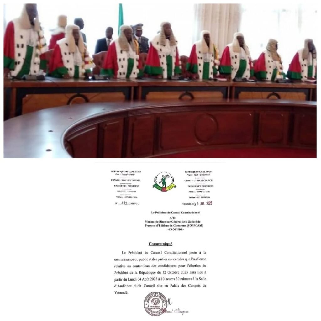 Une semaine après la réception de 35 recours contestant le rejet de candidatures à l’élection présidentielle prévue le 12 octobre 2025, le Conseil constitutionnel ouvre les débats. Dans une correspondance signée par son président, Clément Atangana, il est précisé que l’audience se tiendra le lundi 4 août 2025 à 10h30, dans la salle d’audience du Conseil, située au Palais des Congrès de Yaoundé.