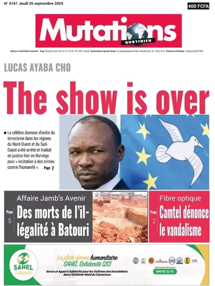 En fonction de sa ligne editoriale, chacun a fait parler son génie pour aguicher son lectorat. Une chose est claire, l’information de l’arrestation de Lucas Ayaba Cho a commencé a faire le tour des réseaux sociaux depuis la mi-journée du 25 Septembre 2024. D’après des sources dignes de foi , Lucas Ayaba Cho a été interpellé à son domicile. Cette arrestation fait suite à une plainte déposée en mars par l’avocat Emmanuel Nsahlai, accusant la Norvège de complicité dans les crimes de Cho Ayaba contre le Cameroun. Me Nsahlai affirme maintenant œuvrer « pour empêcher la libération sous caution de Cho Ayaba, marquant une victoire significative dans la lutte contre le séparatisme et le terrorisme ».