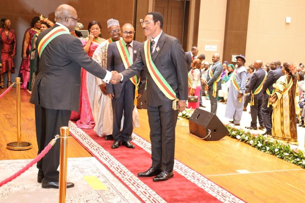 Moment d’émotion et de reconnaissance, la cérémonie a également été marquée par la remise de distinctions honorifiques à plusieurs personnalités. Des médailles des Ordres nationaux, au titre de la Fête nationale du 20 mai 2025, ont été remises par le Vice-Président Baoro Théophile et la Vice-Présidente Muyali. Par ailleurs, des médailles d’honneur du travail, au titre de la Fête du 20 mai 2025, ont été décernées par M. Essian André Noël et El Hadj Boukar Abdourahim.
