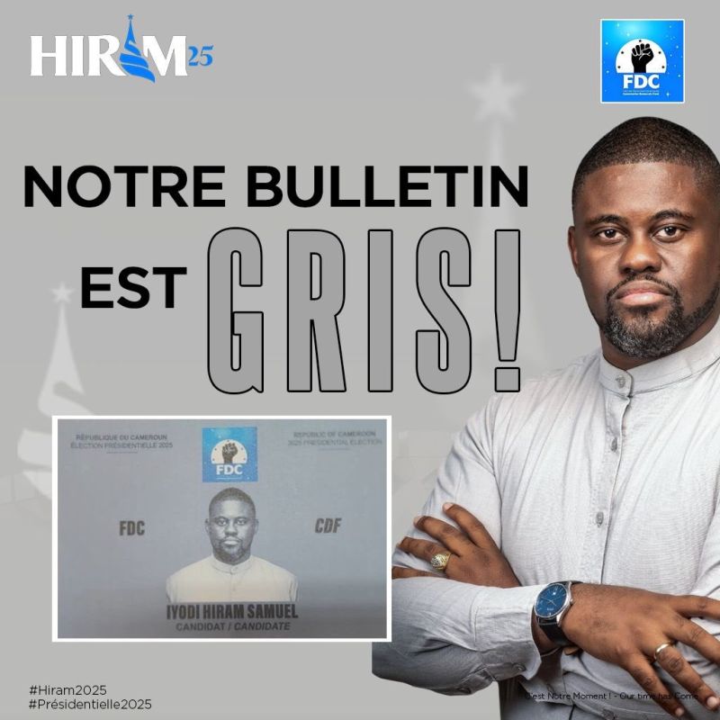 Dans une campagne où les couleurs ont leur langage, Samuel IYODI a choisi le gris comme couleur de son bulletin. Un choix loin d’être anodin : le gris, couleur du ciment, évoque la construction, la cohésion et la solidité. « C’est le ciment qui relie, rassemble et bâtit », affirme-t-il, en écho à sa volonté de fédérer les Camerounais autour d’un projet commun.