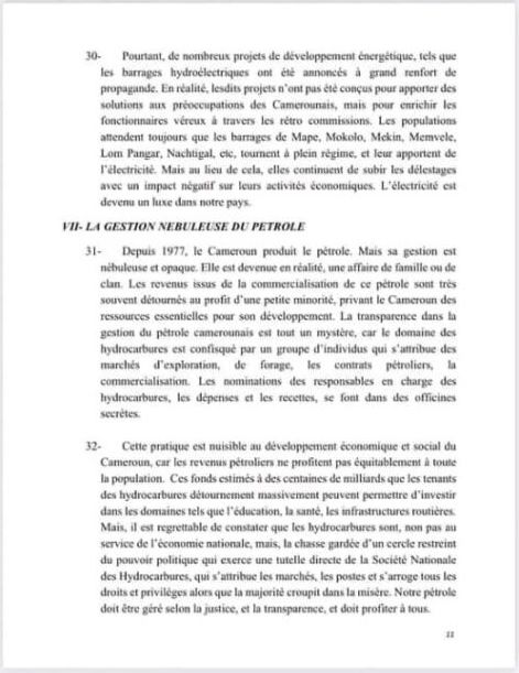 « Les Camerounais aspirent à une alternance dynamique, source de progrès et de développement économique. Sinon, nous risquons de sombrer dans un abîme sans fond. Le malheur de notre pays vient de son enfermement face aux options nouvelles que nous appelons de nos vœux. »