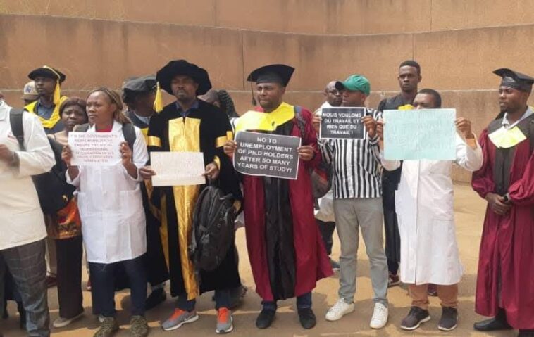 Le Collectif des Docteurs/Ph.D Chômeurs Indignés du Cameroun a eu un échange houleux avec le ministère de l’Enseignement supérieur le 20 Février 2025 après sa manifestation pour exprimer son indignation face à ce qu’il qualifie de favoritisme et d’injustice.